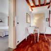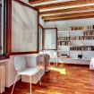 La luminosità di questo appartamento è una sua caratteristica; le travi a vista e il pavimento in legno, insieme all’arredo moderno, fanno di questo posto un luogo caldo ed accogliente perfetto per passare una vacanza a Venezia.